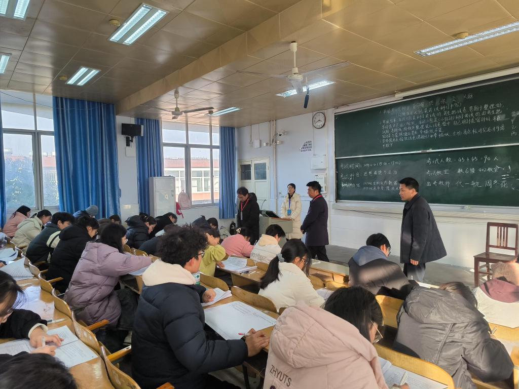 学院领导认真巡查了每一个考场,对考场布置是否合理规范、考生状态、监考教师履职情况等多方面进行了详细查看。从巡视情况来看,考场秩序井然,环境整洁舒适,考生们全神贯注答题;监考教师认真履行职责,严格维护考场的公平公正,整个考试氛围严肃有序。